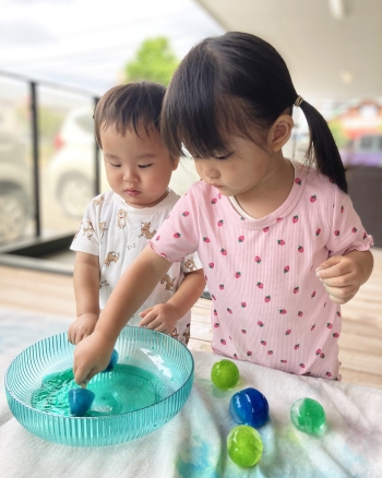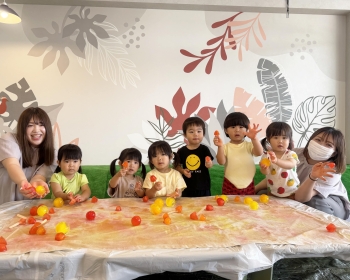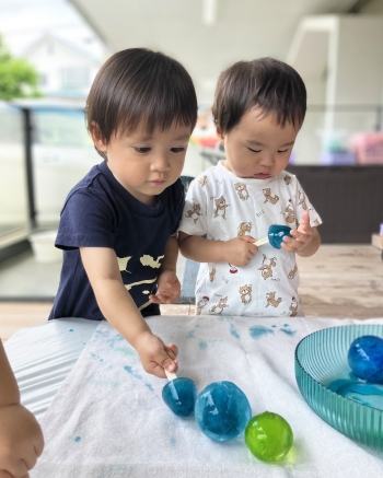 好奇心旺盛な子どもたちは、 様々な色のきれいな氷を掴むと「つめたい!」と言いながら大はしゃぎ😆
