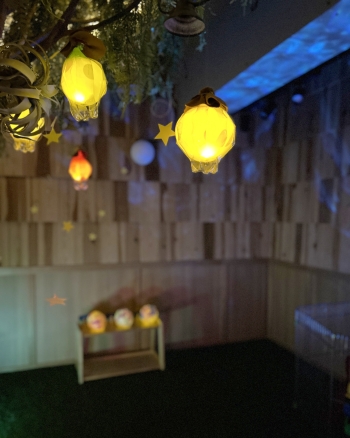 暗い部屋に怖がることなく「わ〜綺麗だね〜」と天井の星空を眺めていました😊