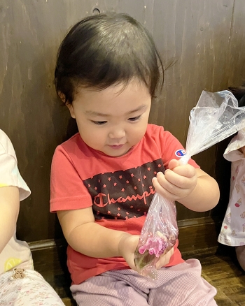 お花を水に入れると少しずつ色がにじみ出てくることに子どもたちはびっくり!👀✨
