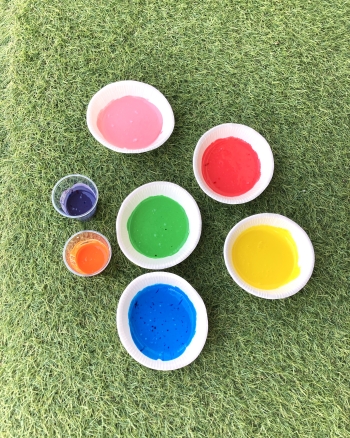 小麦粉と水、食紅を混ぜて小麦粉絵の具を作りました🎨