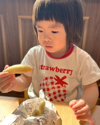 美育活動でパン屋さんごっこを行ったこともあり、様々なパンの種類に興味を持っていた子どもたち。