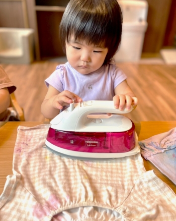 洗濯機を回して、お客さんから預かった洋服を綺麗にしたり、アイロンをかけたりしながら「いらっしゃいませ」とお店屋さんになりきっていましたよ。
