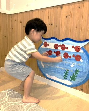 「1.2.3」と数えながら金魚鉢にきんぎょさんを貼ってゲーム感覚で楽しむことが出来ました♪