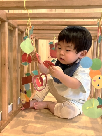 同じ色のりんごにもきんぎょさんがいることに気づいて、トンネルをくぐることを楽しんでいます⭐️