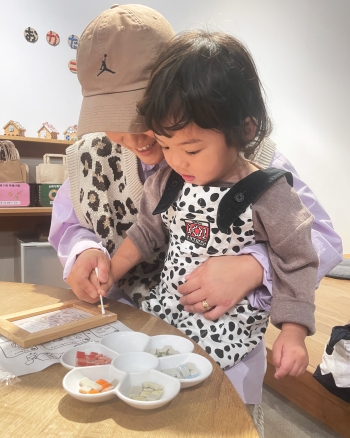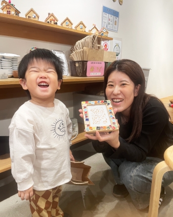 フォトフレームが完成すると、親子でニコニコ笑顔に♡