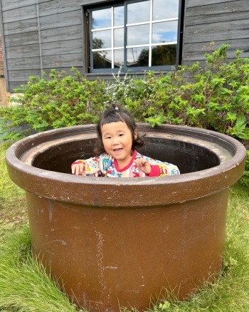 散策の中でも、タイルや焼き物に触れながら楽しむ姿や、焼き物の土管でかくれんぼをする子の姿も見られましたよ!