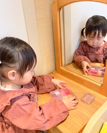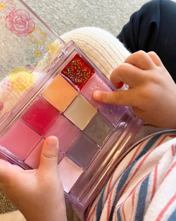 好きな色を指に取って唇やまぶた、爪に塗ってオシャレを楽しむ姿がとっても可愛いですね!