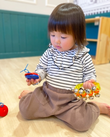 お友だちと一緒に音を鳴らして楽しむ姿もあり、楽器あそびを通して感性をたっぷり刺激された1歳児さんたちでした✨