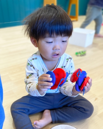 美育活動で、タンバリンやカスタネット、鈴など、いろいろな楽器に触れてみました🎶