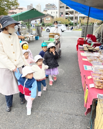 売られている商品をじーっと見たり、お店の方や近所の方に「こんにちは!」と挨拶をしたり興味津々な子どもたち👀