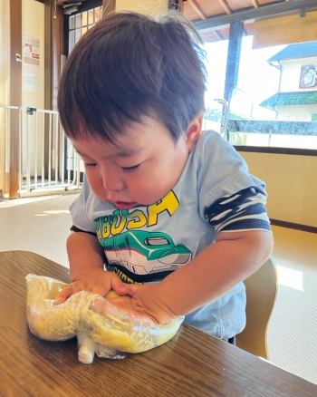 力を入れすぎると平らになってしまう為、「優しく、優しく…」と慎重に握る姿がとても可愛らしかったです💕