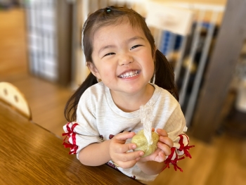 また、潰したさつま芋をラップを用いて上手に丸めることができると「みて!」と満足気♪