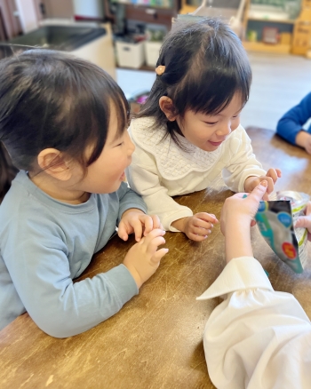 「先生とご飯を食べたり、遊んだりして過ごそうね。」と話すと、安心したのか顔がほころぶ姿が見られました。