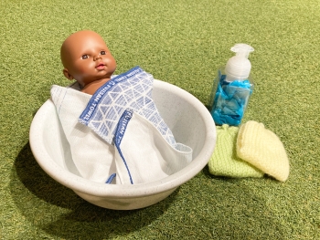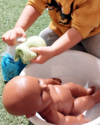 「アワアワ気持ちいいね〜💕」と優しくお人形に語りかける姿も見られるようになりました。