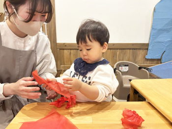 指先を使ってお花紙を丸めたり、丁寧にシールを貼ったり、毛糸で飾り付けをしたりと夢中になってクリスマスの世界に入り、一人ひとり“つくる楽しさ”が溢れていましたよ🌟