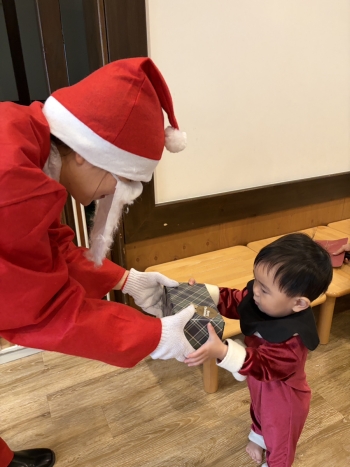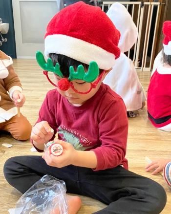 サンタさんからプレゼントをもらって、早速遊びに夢中の子どもたち