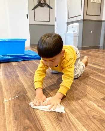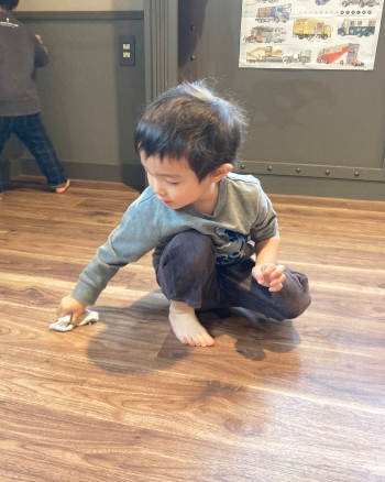 掃除の仕方を伝えると”掃除隊🫡”になりきって、部屋の隅々まで雑巾掛けをする姿が見られました🧹