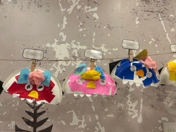 完成した作品は、園の玄関に全クラス分を展示しました。