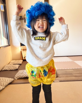 完成した鬼のパンツを履いてとても可愛らしい小鬼に変身した子どもたち✨