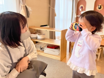 今月はインスタントカメラで写真を撮ることに挑戦♪初めはフィルムを回すのが固く保育者と一緒に回していましたが、慣れてくると自分の力で回すことが出来るようになる子も…✨
