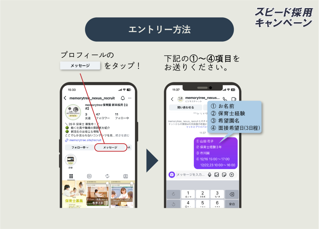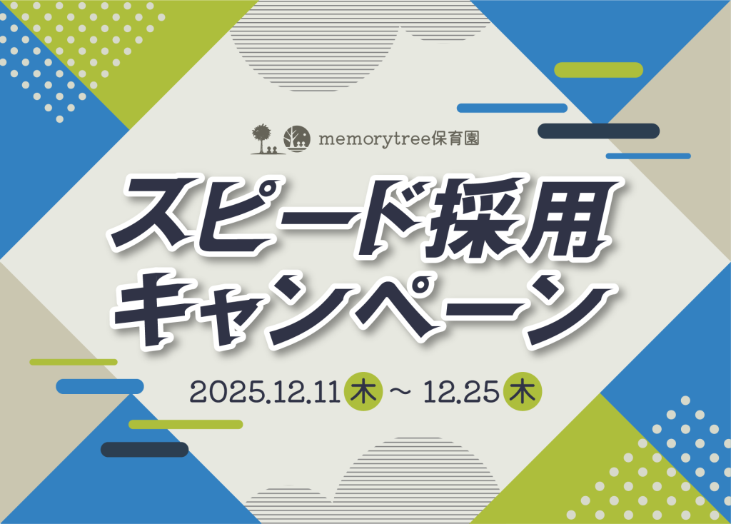 memorytree保育園では、転職をご検討されている方が、できるだけスムーズに次の一歩を踏み出せるよう、期間限定で 「スピード採用キャンペーン」 を実施いたします。